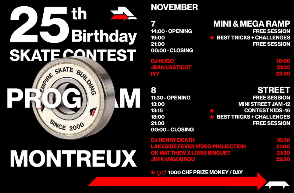 L’Association ASSIR a été fondée en septembre 1995 ; l’Empire Skate Building a ouvert ses portes le samedi 04.11.2000 ; on fête donc cette année les 30 ans de l’ASSIR et les 25 ans de l’Empire Skate Building.
